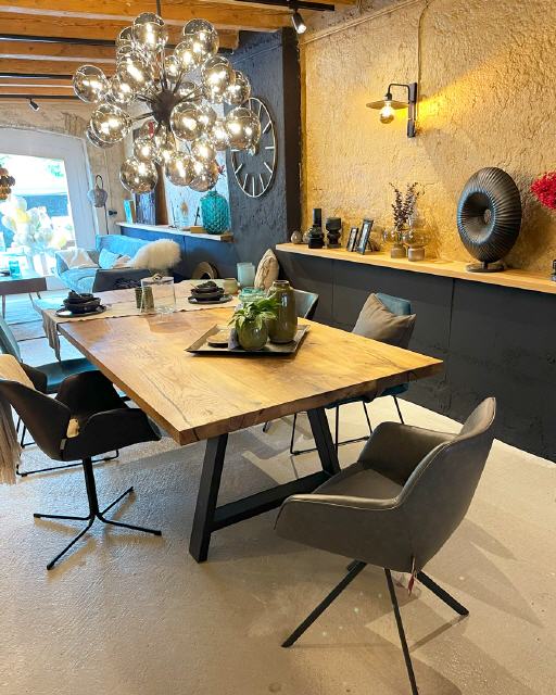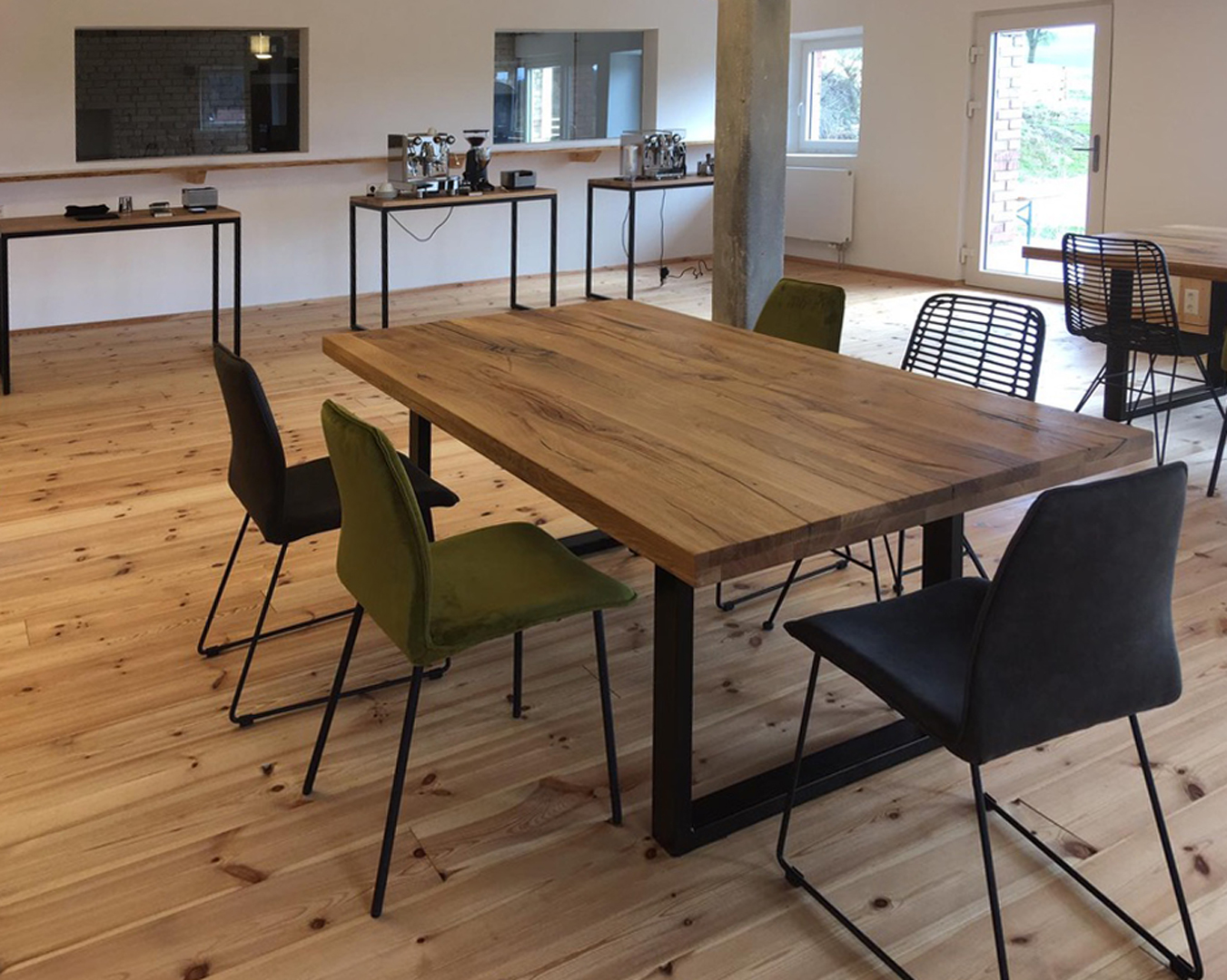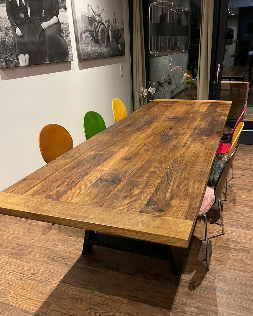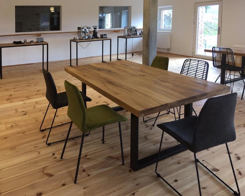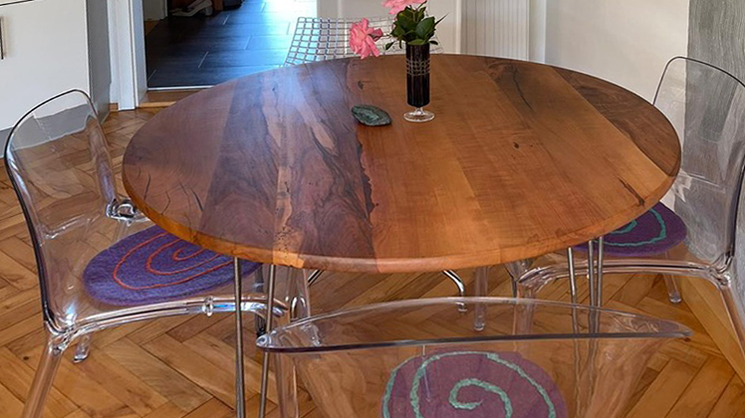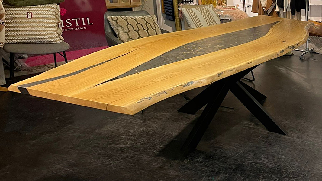 Jeder Tisch ist einzigartig mit einer individuellen Form und Kantenausbildung.