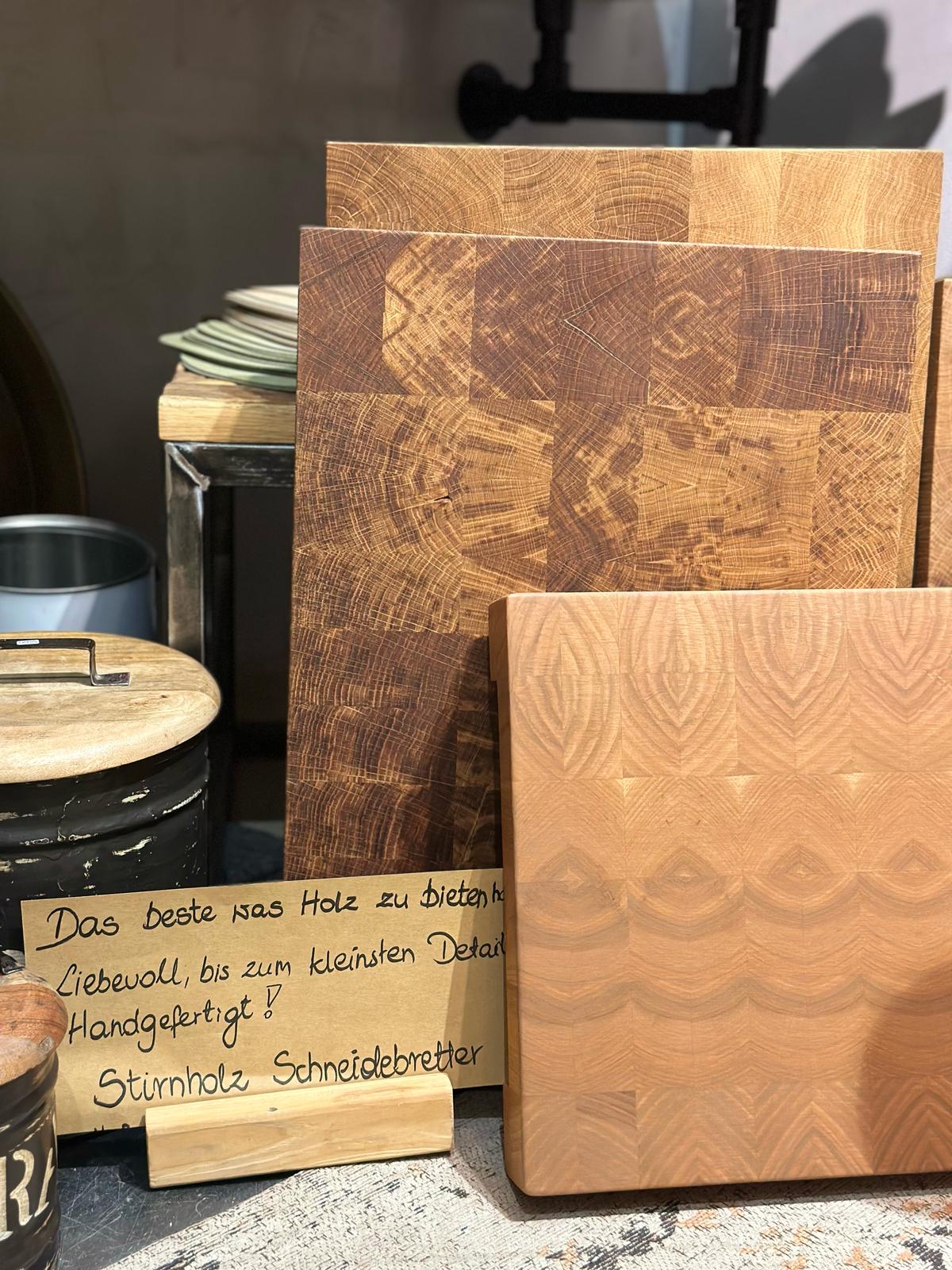 Für den täglichen Gebrauch haben auch Stirnholz Schneidebretter in den unterschiedlichsten Größen, Ausführungen und Holzarten.